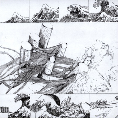 installation type+location: a series of screens support surfaces which are agitated by the wind: shredded paper, windmills, silk curtains